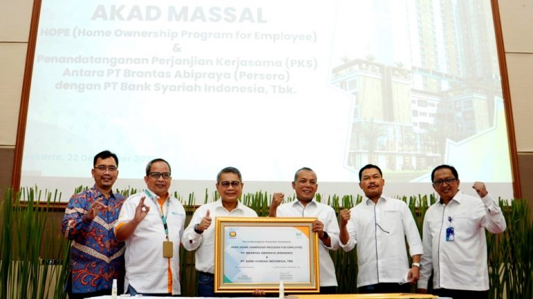 PT Bank Syariah Indonesia Tbk (BSI) dan PT Brantas Abipraya (Persero) melakukan penandatanganan perjanjian kerja sama (PKS) dan akad massal pembiayaan kepemilikan rumah melalui House Ownership Program for Employee.