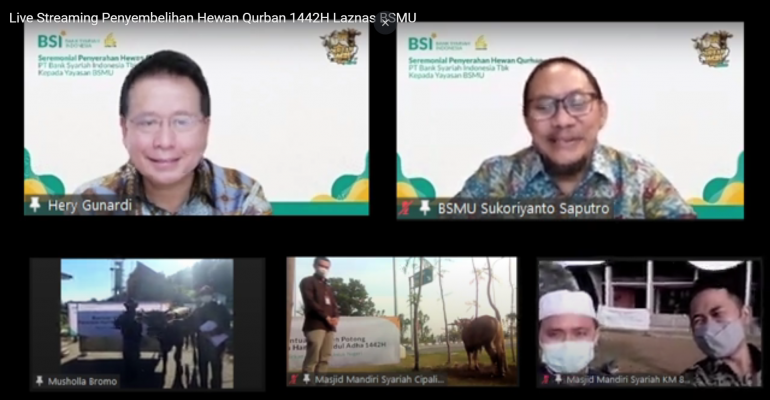 Acara simbolik penyerahan hewan kurban berupa 3 ekor sapi dilakukan secara daring oleh Direktur Utama Bank Syariah Indonesia, Hery Gunardi kepada masyarakat di sekitar 3 masjid BSI. Ketiga masjid tersebut yakni Masjid BSI Tol Cipularang KM88A, Masjid BSI Tol Cipali KM165 dan Mushola BSI di Gunung Bromo – Jawa Timur.