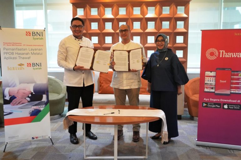 Dalam kerjasama ini BNI Syariah dan PT Kuwais International bersama-sama menyediakan layanan penerimaan pembayaran tagihan dan pembelian token secara online dan real time yang diselenggarakan oleh biller melalui aplikasi Thawaf.