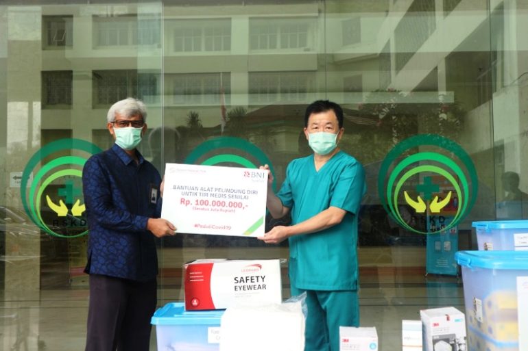 Penyerahan bantuan ini dilakukan oleh Pemimpin BNI Syariah Kantor Cabang Jakarta Timur – Yunan Siregar kepada Direktur RSKD Duren Sawit – Theryoto. Turut hadir dalam acara ini Kepala Satuan Pelaksana Kepegawaian RSKD Duren Sawit – Rahmat Illahi.