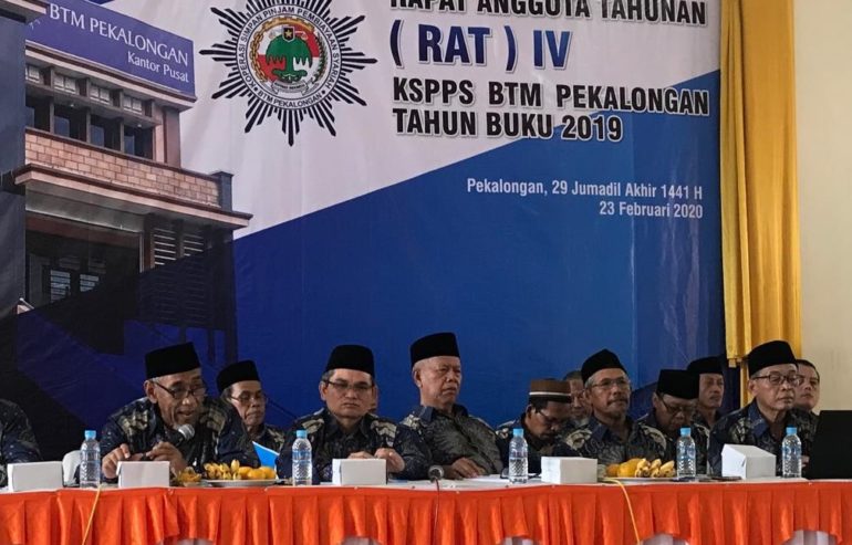 Demikian pernyataan Roufah Ainani mewakili Kepala Disperidagkop Kabupaten Pekalongan di acara Rapat Anggota Tahunan (RAT) ke – IV BMT Pekalongan Tutup Buku Tahun 2019 di Pekalongan, Senin (23/02/2020).