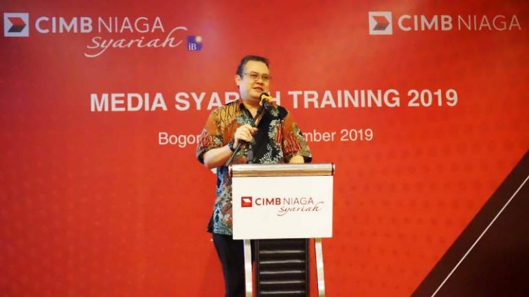 Direktur Syariah Banking CIMB Niaga - Pandji P. Dajajanegara berbicara dalam Media Syariah Training di Bogor (22/11).