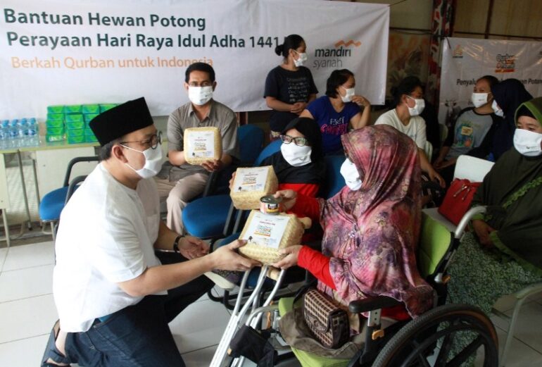 Penyaluran hewan kurban ini dilakukan oleh Kantor Region/Area/Cabang Mandiri Syariah di seluruh Indonesia ke berbagai pihak seperti *pesantren, komunitas disabilitas, masjid, lembaga dan yayasan, lingkungan masyarakat*, dan mitra lainnya.