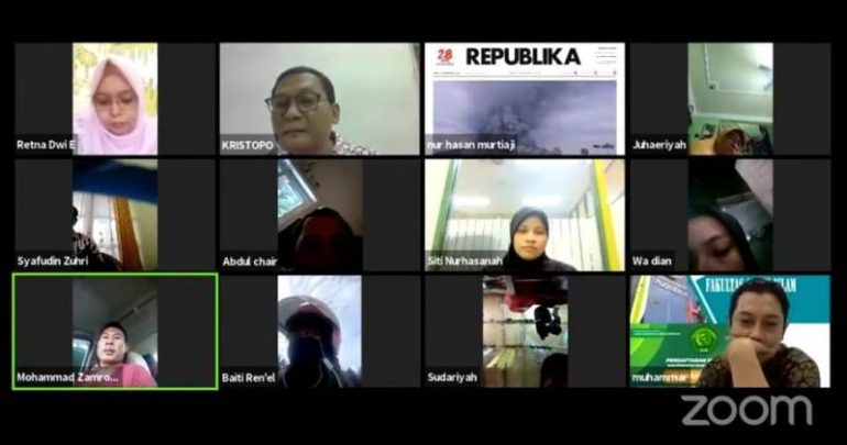 “Etika jurnalistik di era disruption atau di era teknologi digital sangat penting. Apalagi jurnalistik sebagai entitas keilmuan dalam Program Studi (Prodi) Komunikasi Penyiaran Islam (KPI) dipandang sangat penting, karena pada prodi KPI mahasiswa diajarkan etika jurnalistik Islam sebagai bekal jika mahasiswa atau alumni KPI berkarir sebagai jurnalis,” kata Ketua Dewan Pimpinan Pusat (DPP)Asosiasi Program Studi Komunikasi dan Penyiaran Islam Perguruan Tinggi Keagamaan Islam Negeri dan Swasta se-Indonesia (Askopis), Muhammad Zamroni, saat menjadi nara sumber webinar nasional dengan tema “Asyiknya Berkarir di Dunia Jurnalistik Bagi Mahasiswa dan Alumni KPI,” belum lama ini, via zoom meeting.