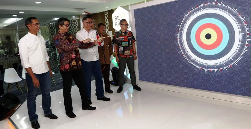 Wakil Kepala Bekraf, Ricky Joseph Pesik (kedua dari Kiri) bersama Dirut BNI Syariah - Abdullah Firman Wibowo (tengah) meluncurkan Deureuham 2019 di Kantor Pusat BNI Syariah, Rasuna Said, Jakarta (26/4).