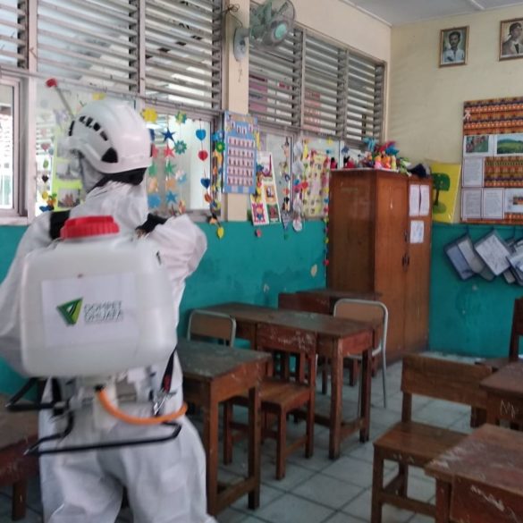 SDN Rawa Badak Utara 23 merupakan sekolah yang pertama di wilayah Utara Jakarta untuk dilakukan sterilisasi dengan penyemprotan desinfektan. Yamin...