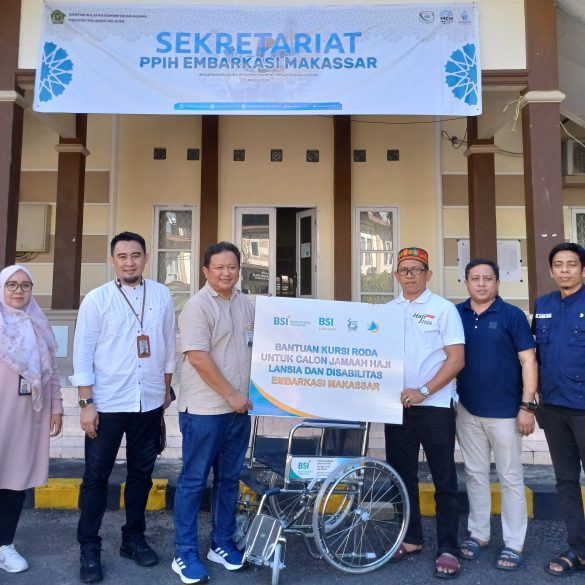 Penyerahan bantuan dilakukan di Sekretariat PPIH Embarkasi Makassar. Wakaf kursi roda ini merupakan wujud dukungan BSI dan BSI Maslahat untuk...